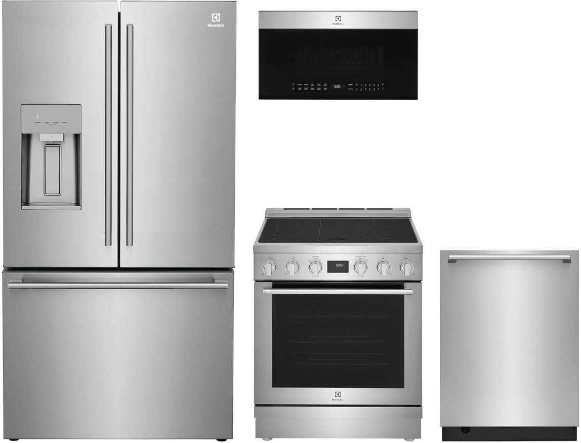 The Electrolux 4 Piece Stainless Steel Kitchen Package with a french door refrigerator, induction range, built in dishwasher, and over the range convection microwave.Read More
