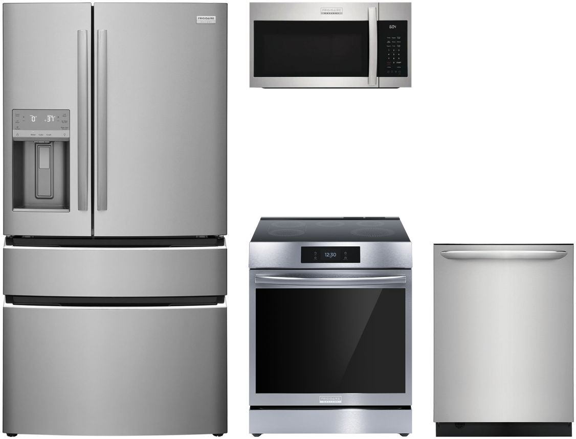 Frigidaire Gallery® 4 Piece Stainless Steel Kitchen Package with a french door refrigerator, slide in induction range, built in dishwasher and over the range microwaveRead More