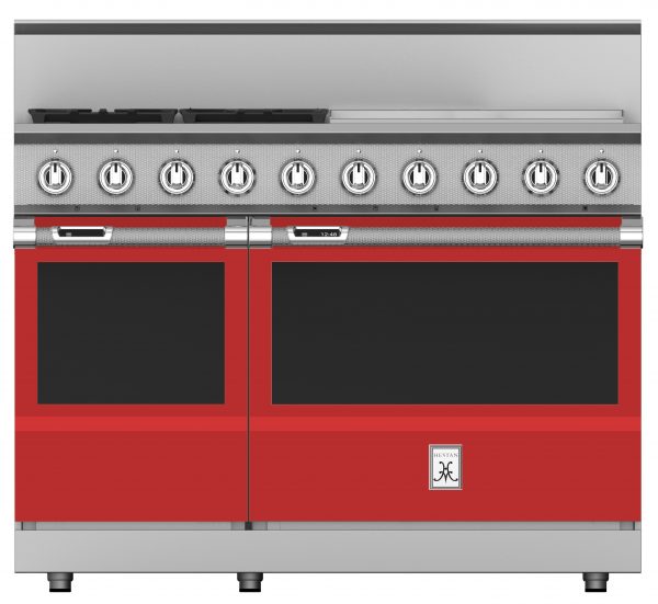 The Hestan 48” range provides searing culinary power with a sealed burner system delivering exceptional temperature control for culinary power up to 23,000 BTUs and as low as 500 BTUs. The 24” commercial-grade stainless steel gas griddle makes breakfast a cinch with superior heating and a thermostat for precise temperature control. The high-performance oven features exclusive PureVection™ technology, which electronically controls multiple heating convection systems, to optimize baking, broiling, roasting and convection baking. And, the MarquiseDisplay™ gives you a chef-friendly digital display – conveniently inset right in the oven handle.Read More