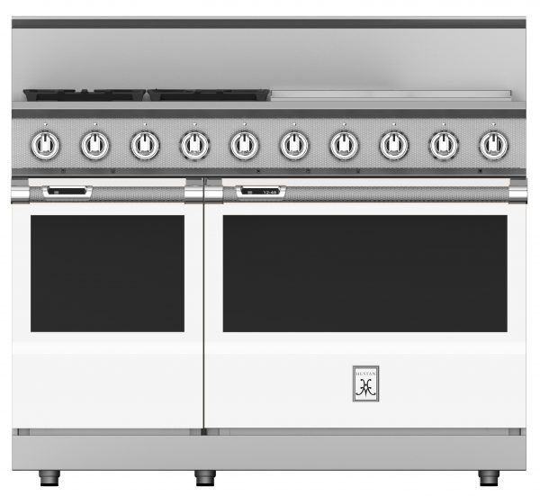 The Hestan 48” range provides searing culinary power with a sealed burner system delivering exceptional temperature control for culinary power up to 23,000 BTUs and as low as 500 BTUs. The 24” commercial-grade stainless steel gas griddle makes breakfast a cinch with superior heating and a thermostat for precise temperature control. The high-performance oven features exclusive PureVection™ technology, which electronically controls multiple heating convection systems, to optimize baking, broiling, roasting and convection baking. And, the MarquiseDisplay™ gives you a chef-friendly digital display – conveniently inset right in the oven handle.Read More