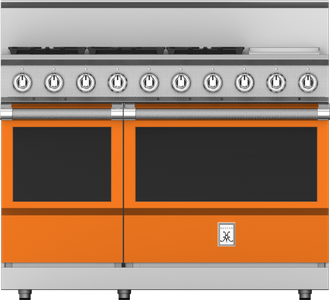 The 48” all gas range offers the most powerful gas burner available to the home – the patented CircuFlame™ burner – the same powerful burner featured on the award-winning Hestan Commercial restaurant equipment. On the other end of the spectrum, the simmer flame setting on the surrounding burners ensures a gentle, non-flickering flame of 500 BTUs for your most delicate sauces. The high-performance oven features exclusive PureVection™ technology, which electronically controls multiple heating convection systems, to optimize baking, broiling, roasting and convection baking.Read More